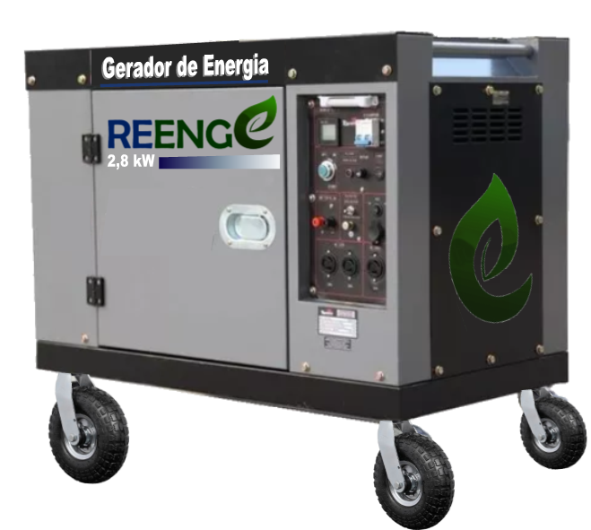 O REENGE é um Gerador de Energia portátil e autônomo que não polui o meio ambiente por não utilizar combustível. Possui sistema de controle de rotação indutivo, para economia de energia inteligente. Fácil manutenção, armazenamento, com rodas para melhor manuseio. Indicado para locais sem energia de rede, podendo atuar como fonte suplementar ou principal.